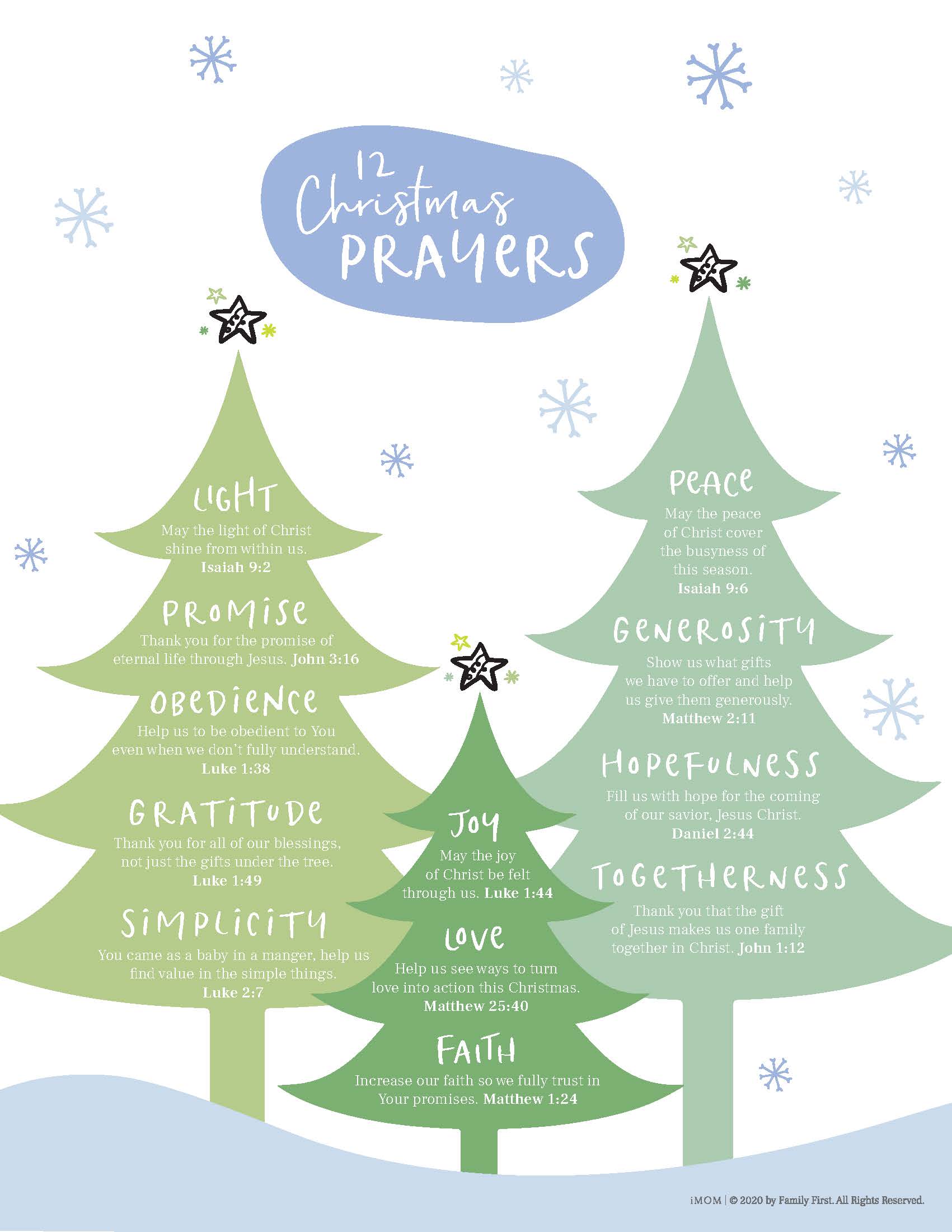 iMOM’s Christmas prayers printable page is special. Not only does it encourage you to reflect on what’s important at Christmas—like joy, peace, and hope—but we’ve also provided a Bible verse that will help connect each word to the life of Jesus. We hope that the time you spend praying and reflecting brings you peace and reminds you of the gifts that are present in your life every day. These Christmas prayers are great for kids too. Our graphic designer was so inspired she made three for you to choose from. If you need some help getting started praying with your children, try our 10 Ways to Teach Your Child to Pray resource.