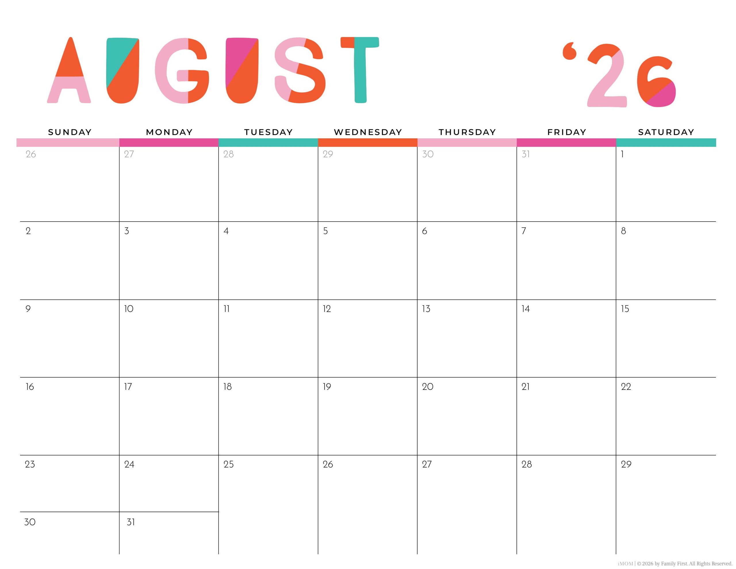 Our Colorful Printable Calendars are a bright and vibrant way to stay on top of your schedule. Our days are long and full—of meetings and meal prep, drop-offs, and pickups. Sometimes, just keeping track of all our commitments is a challenge. To help, we’ve created a new calendar design.
