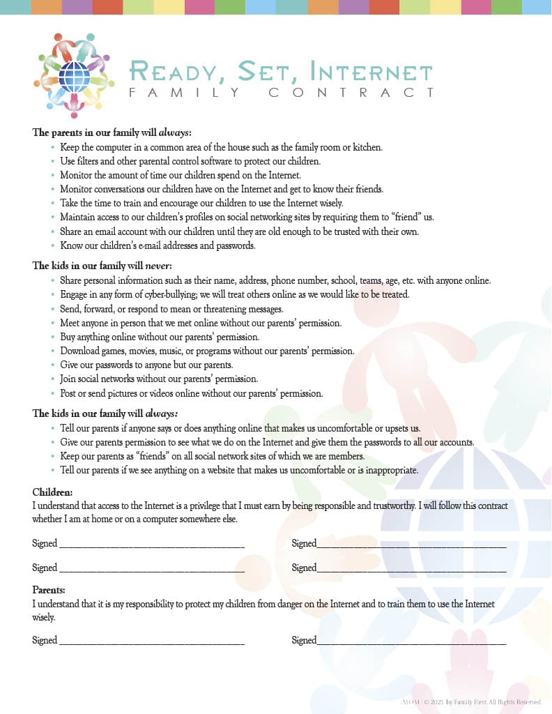 The Internet is an amazing place where your child can see and meet the world. What part of that world is safe for your child should be determined by you. Discussing and enforcing this contract will help you protect your child on the internet.