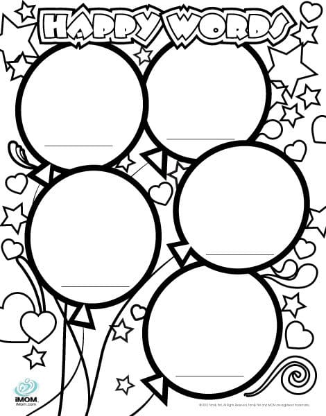 Just by filling your mind with the positive you can change your outlook. So have your children use this coloring page to write their five happiest words and draw a picture to go with each. Just seeing what they come up with will more than likely make you happy.