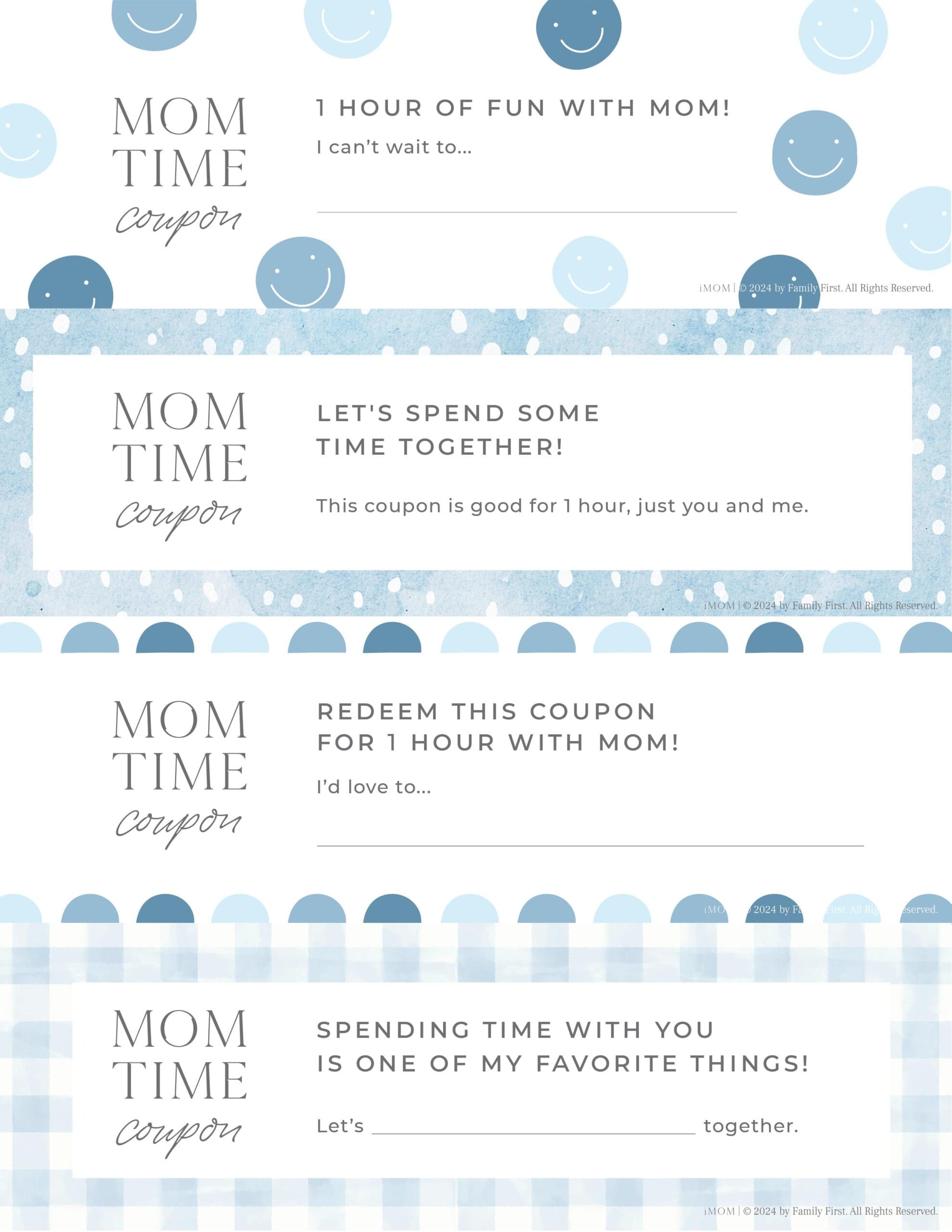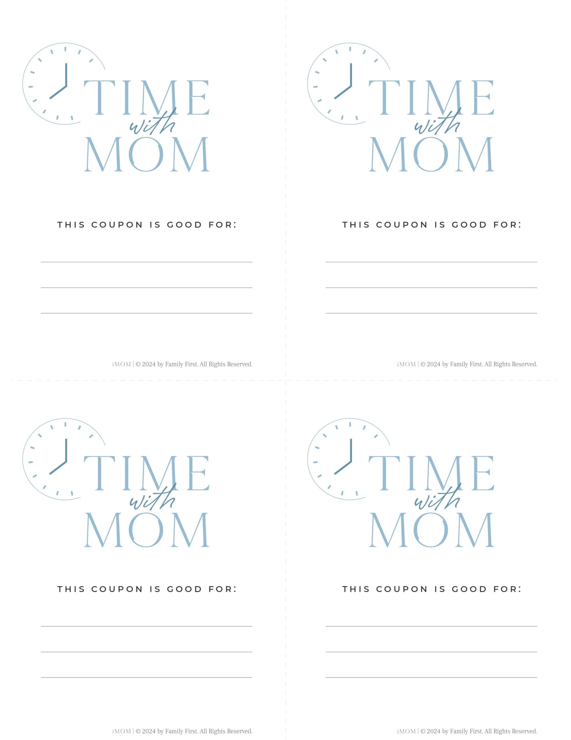 Give your kids what they really want—more time with you! Surprise your children with iMOM’s Mom Time Coupons for hours of memory-making fun.