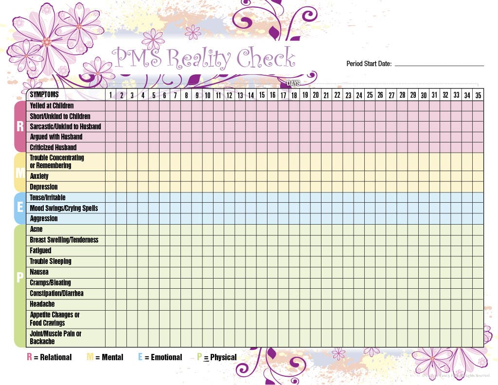 If you think you have PMS or PMDD, use a PMS tracker for several menstrual cycles. You can use our PMS Reality Check to note which symptoms you are having on which days of your cycle, and how bad the symptoms are. If you seek medical care for your PMS, having your menstrual symptom charts is extremely helpful.Â