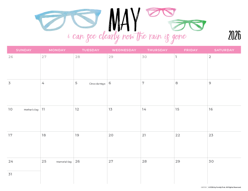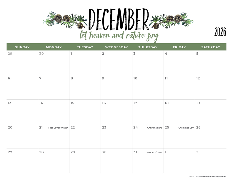 For all the busy moms out there, make life a little less stressful with this wonderful calendar! Inspired by seasonal lyrics, this fun printable calendar will help you organize your weeks or motivate you to schedule your next vacation. Enjoy!