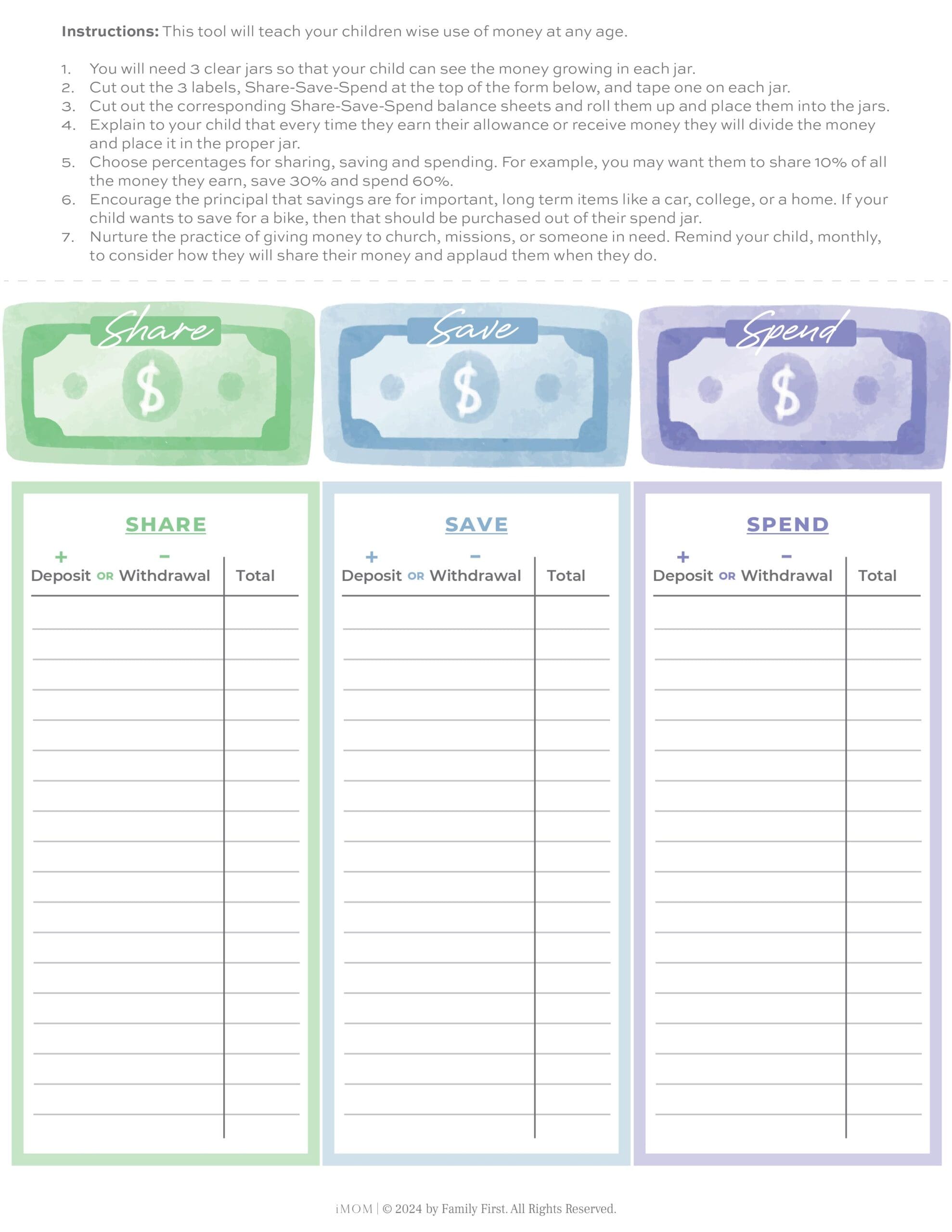 Spending money comes naturally to almost everyone. But what about saving and sharing—how can we teach our children to make that more automatic? Well, our Share, Save, Spend tool is a fun way for kids to get in the habit of using their money wisely.