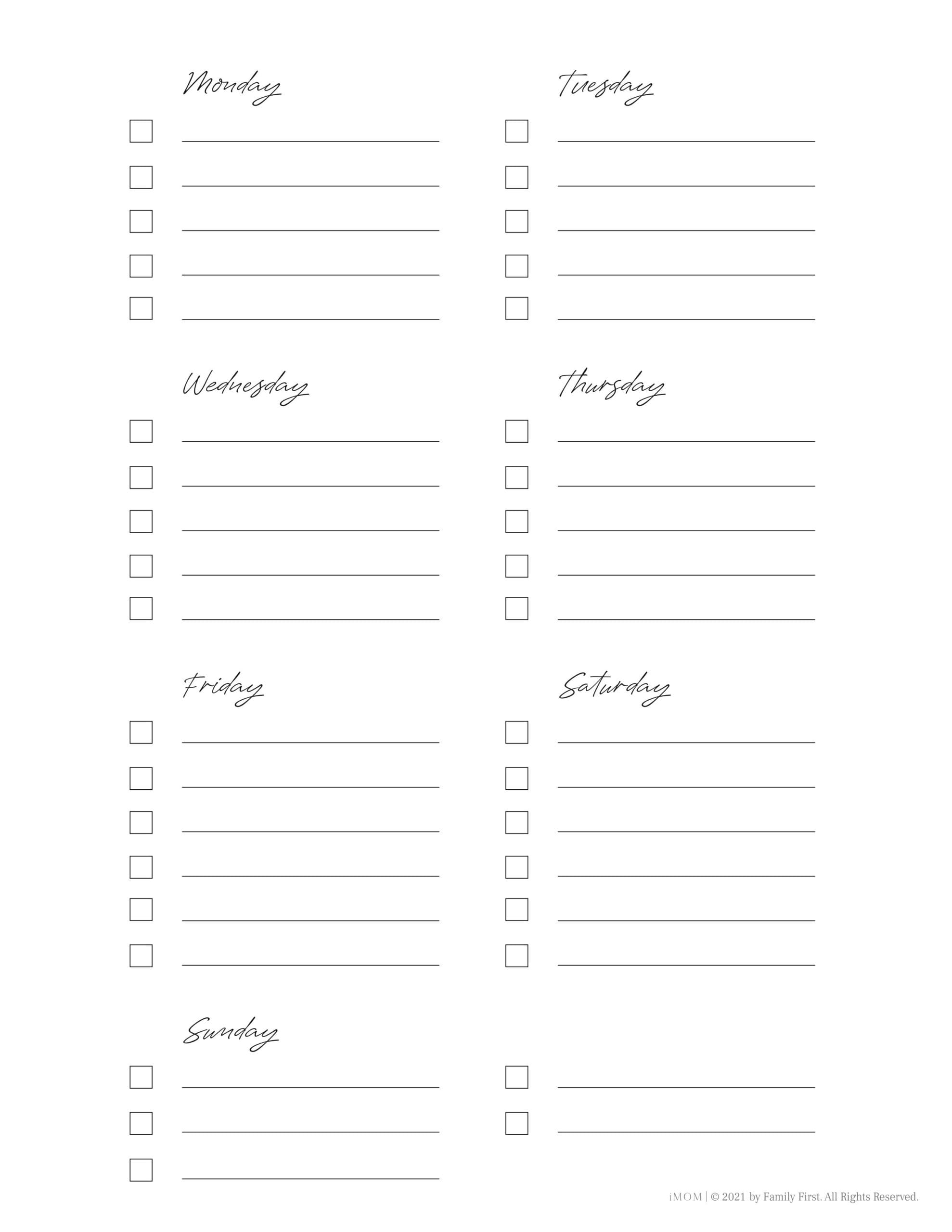 iMOM’s simple chore chart is free to print and can take your to-do list to the next level. Divide up the chores by frequency—daily, weekly, or monthly—and then assign each one to a member of the family. As the tasks get done, check the boxes and watch the month fill up. We’ve even included space on our simple chore chart to track the progress of the bigger jobs. If one of your monthly tasks is to wipe down all the baseboards, you can make a hash mark for every room that is complete. Or if you try to clean one closet out per month, use that space to write which ones you’ve done.