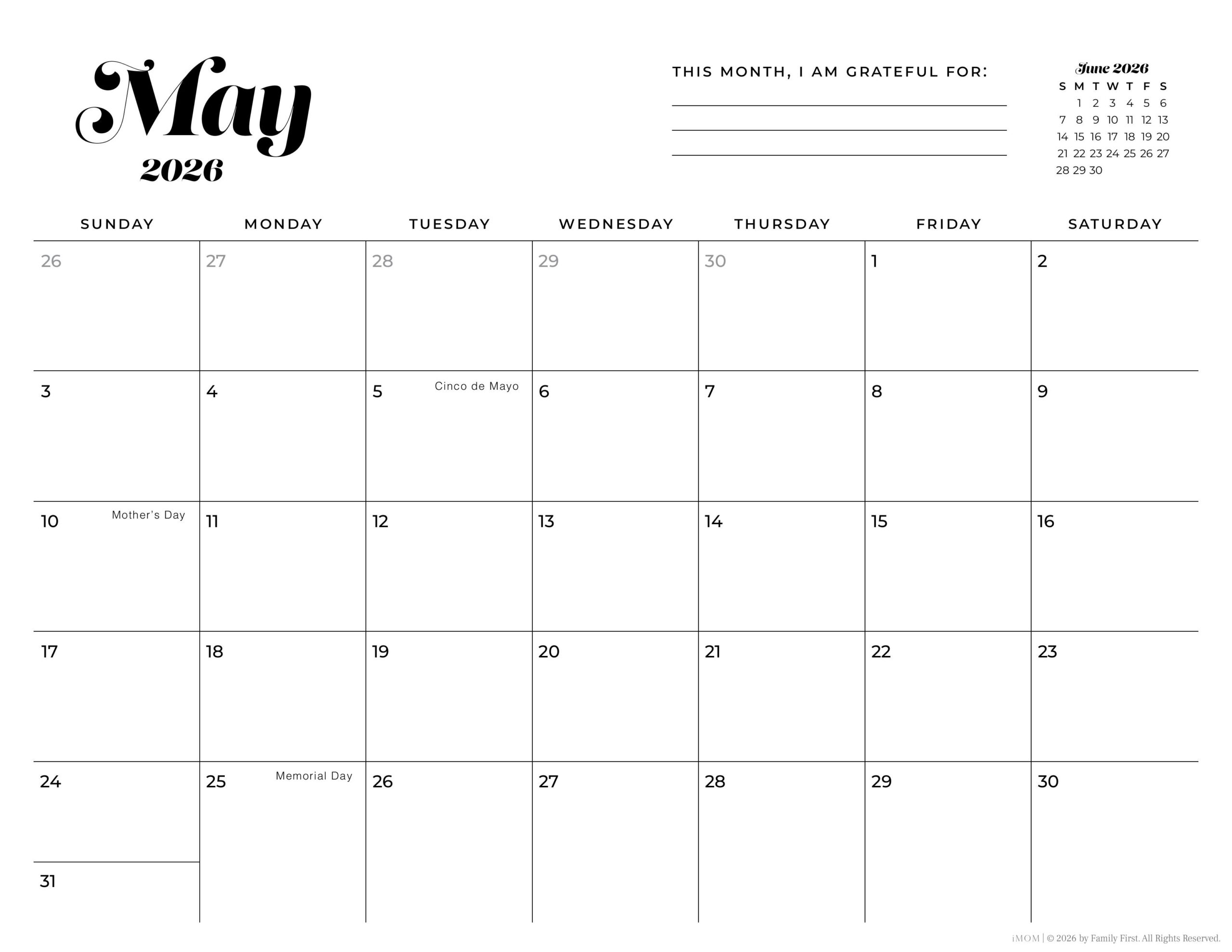 As moms, our days are long and full—of parent/teacher conferences, pediatrician appointments, and extracurricular activities. Sometimes, just keeping track of day-to-day tasks is a struggle. To help, we’ve created our newest calendar design: the Simple Calendar!