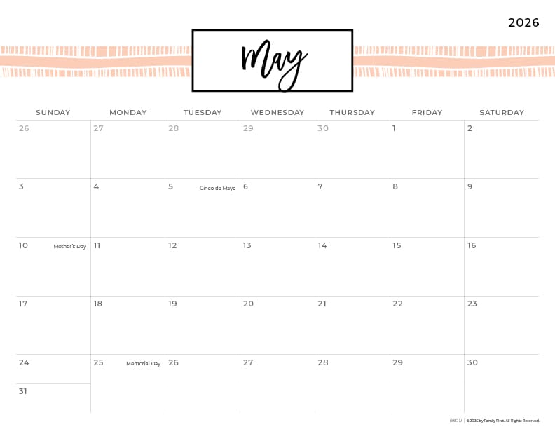 2026 Mom Is a Verb Printable Signature iMOM Calendar